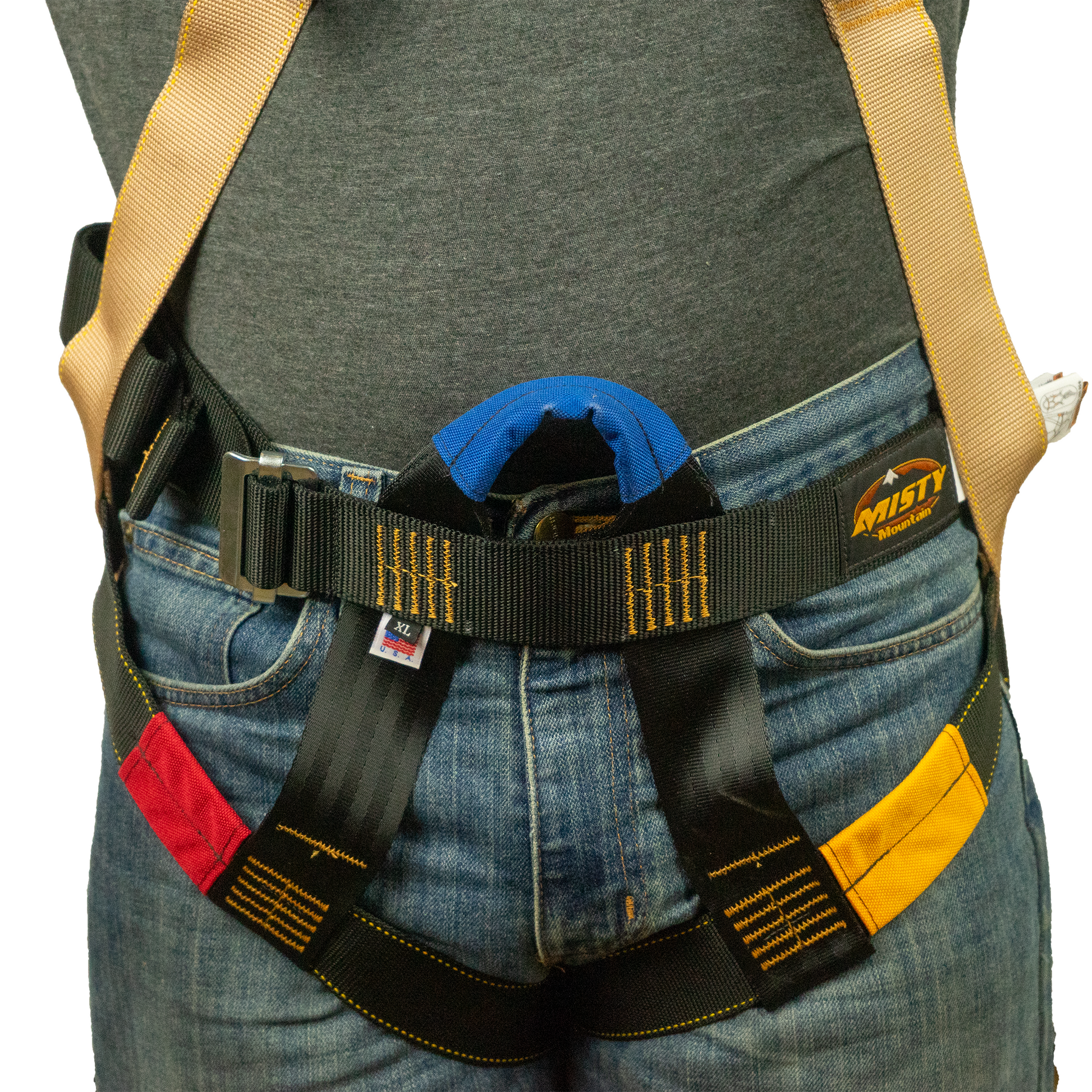 Misty Mountain’s Full Body Harness, with both front and dorsal attachment options, is very popular with zipline and canopy tours.