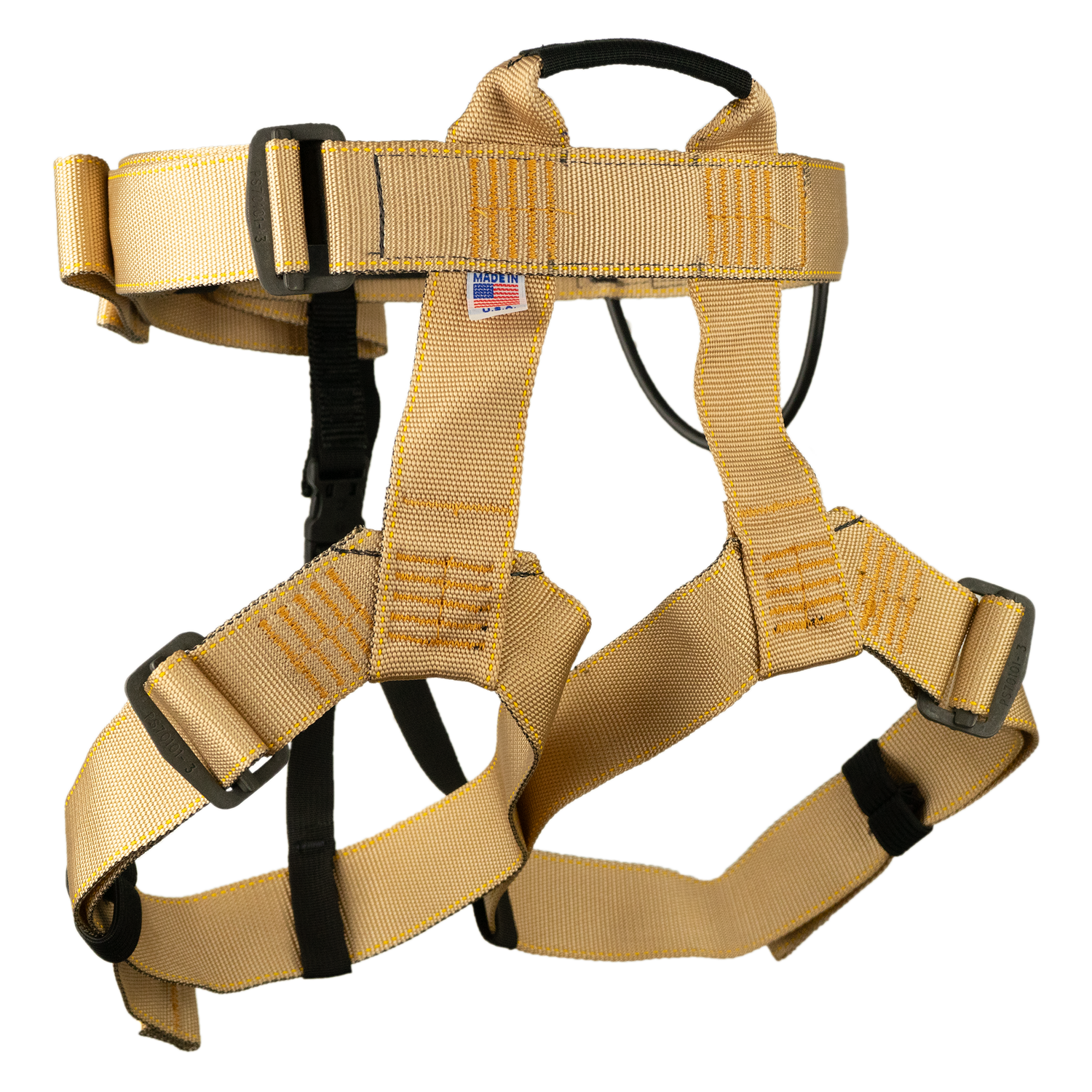 Selected for the US Army Mountain Kits, the Milroc harness facilitates safe travel over mountainous terrain. Made in the USA by Misty Mountain of US sourced textiles and hardware, Berry Amendment Compliant, the Milroc is UIAA Safety Label approved and rated to 15kN (3,400 lbs). Desert Tan.