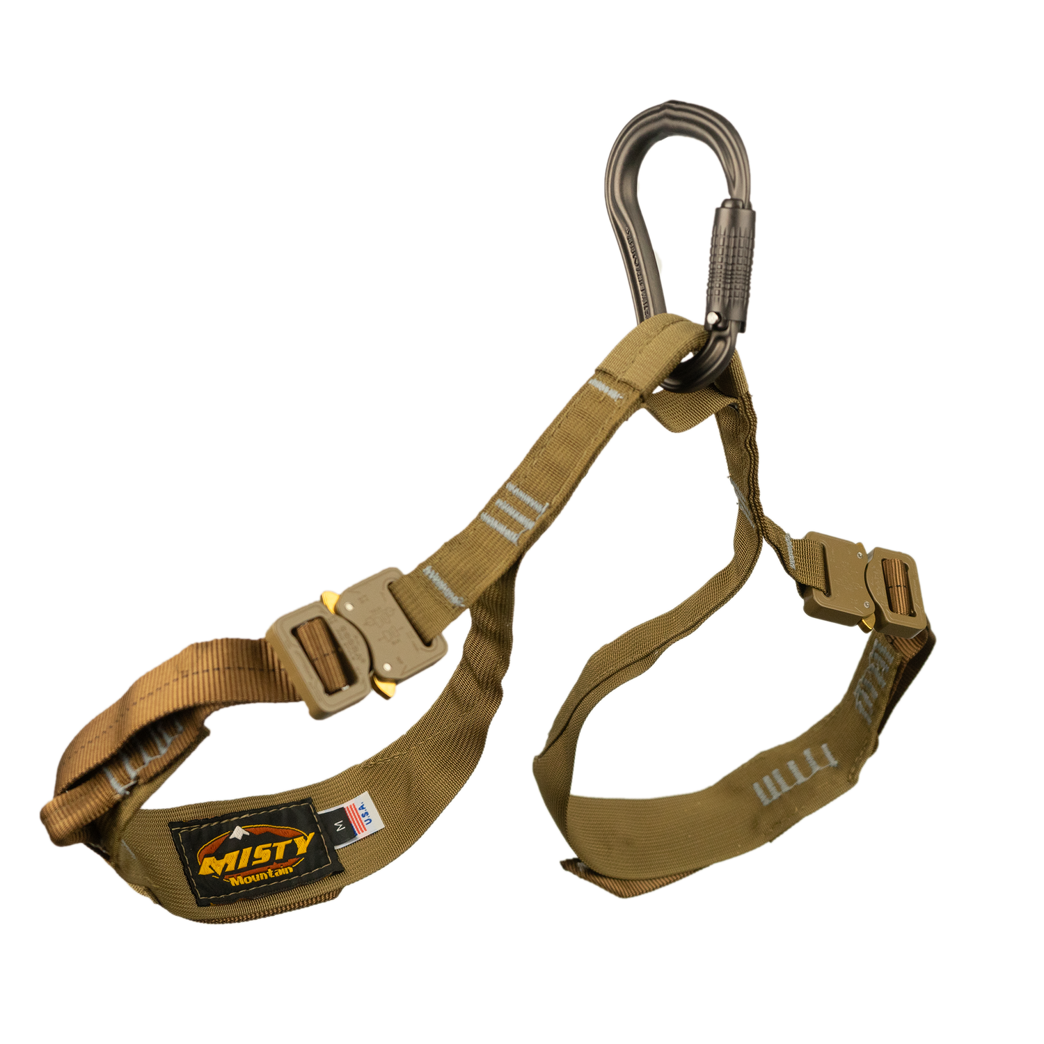 MM Cobra Light Leg Loops are very minimalist, allowing them to be bundled and stowed in a pocket. Weighing less than 1/2 pound, these leg loops feature 1″ Austri Alpin Cobra buckles. Auto block loops on each leg loop for clipping a prusik or klemheist knot rappel backup. Cordura nylon reinforced attachment point for durability. Made in the USA by Misty Mountain. Auto Locking carabiner included.