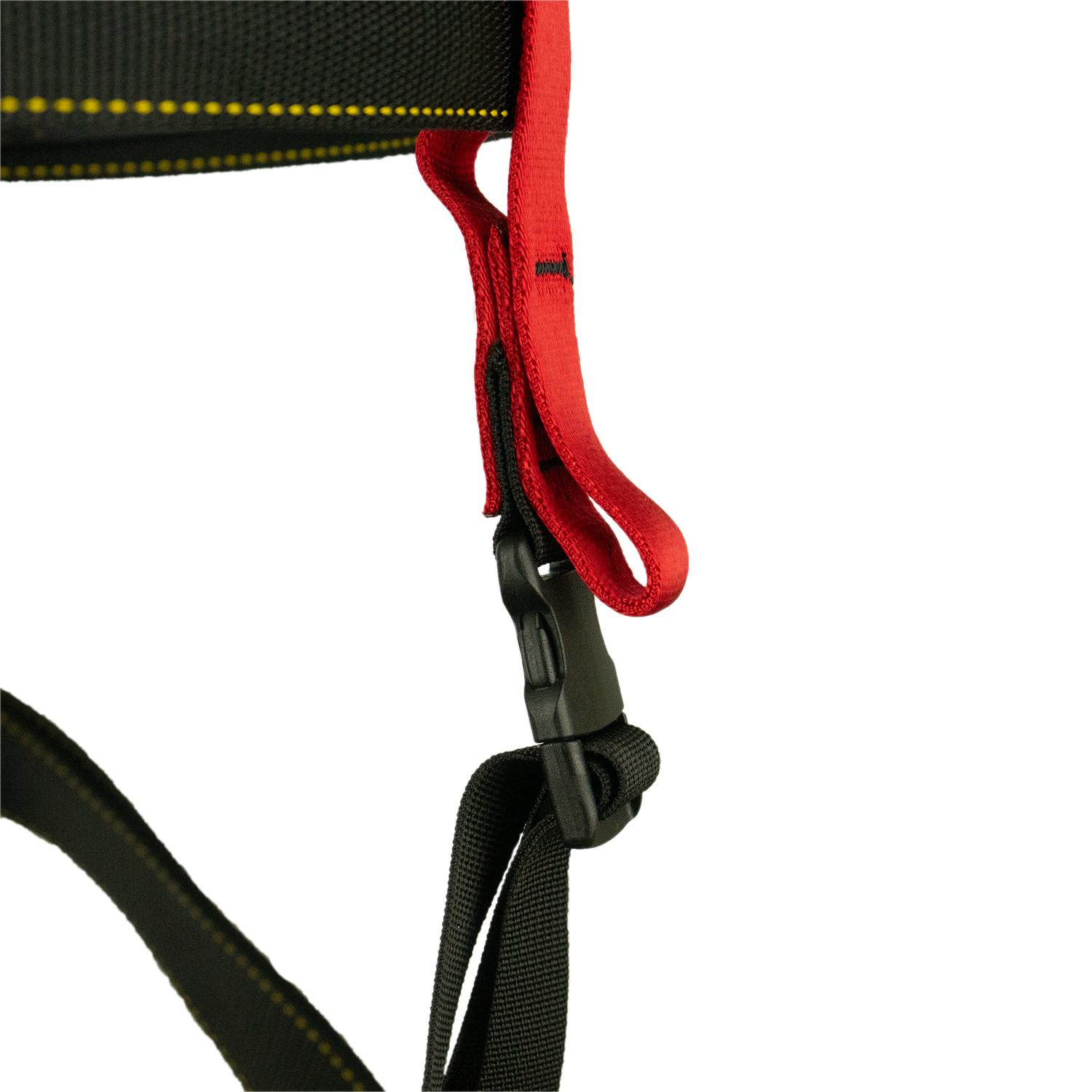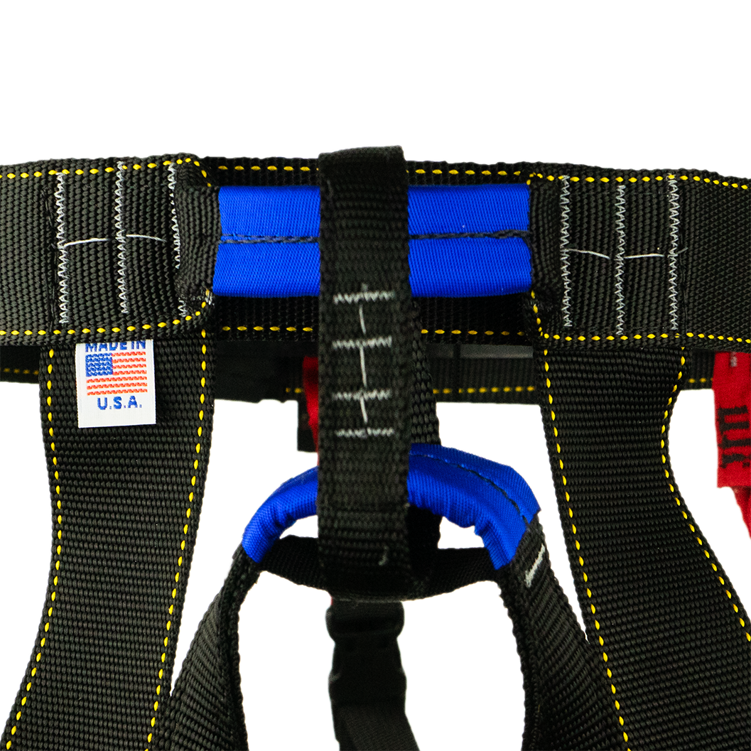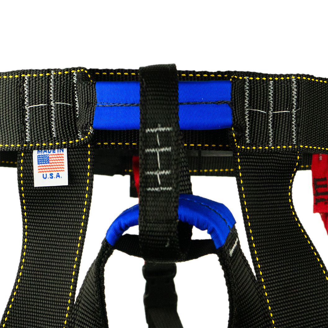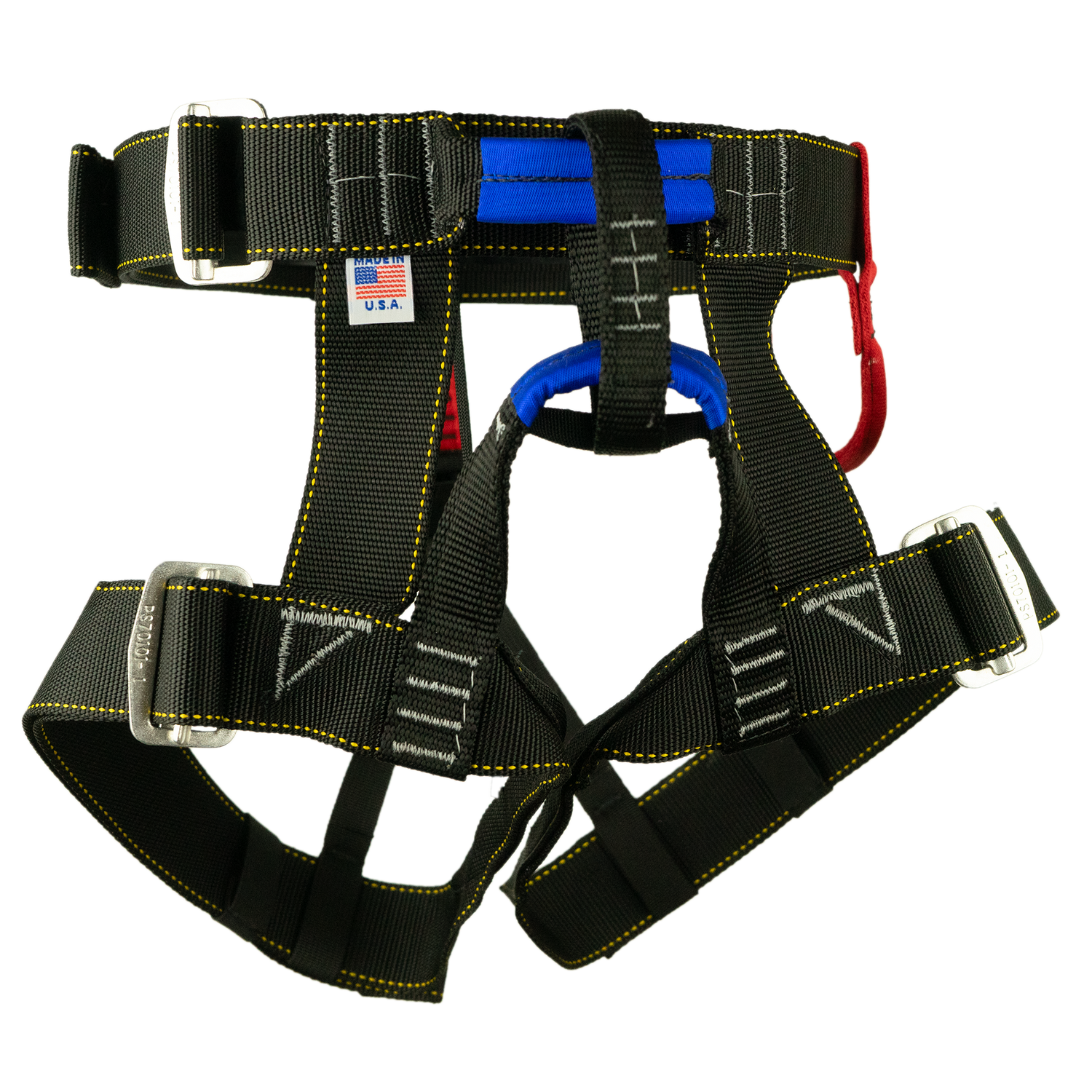 The Spectrum has two hard points attached together by a belay loop. This feature is meant to get participants ready for a recreation harness.