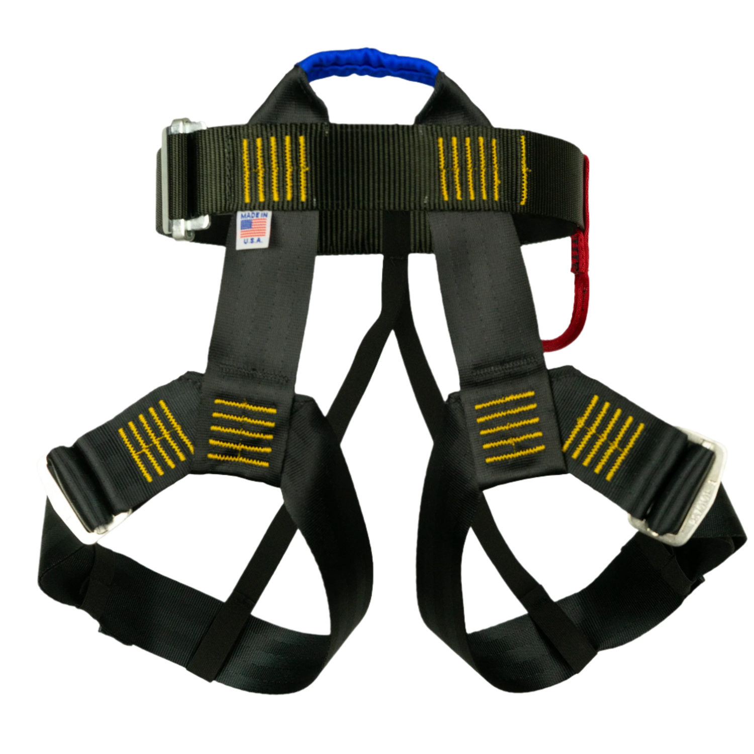 The Zipstream is designed specifically for climbing gyms and rope courses. Similar to a challenge with the addition of a full strength gear loop.
